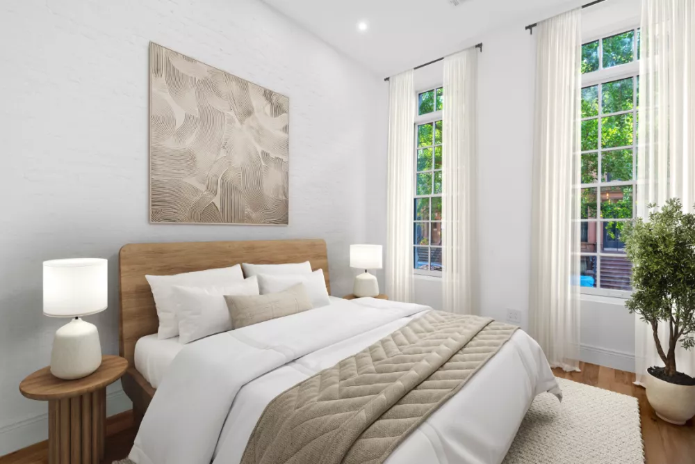 Tucked within a stately Harlem brownstone on a storied landmarked, tree-lined street, this 2,400-square-foot triplex sanctuary blends timeless beauty with modern sophistication. Sunlight pours through south-facing Pella architectural windows, illuminating oak floors that flow throughout the space. The home features three serene bedrooms that offer a tranquil retreat, complemented by 3.5 artfully designed bathrooms showcasing thoughtful aesthetics and modern elegance. A custom iron entry door welcomes you home, where Italian marble countertops shimmer in a bespoke kitchen fitted with sleek custom cabinetry, a dishwasher, and a Bertazzoni stove, ready to inspire culinary dreams. The primary suite is a haven unto itself, with a walk-in closet and a spa-like shower featuring a double vanity, perfect for quiet moments of reflection. Central HVAC with Google Nest thermostats ensures year-round comfort, and a washer/dryer adds convenience.