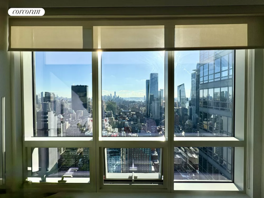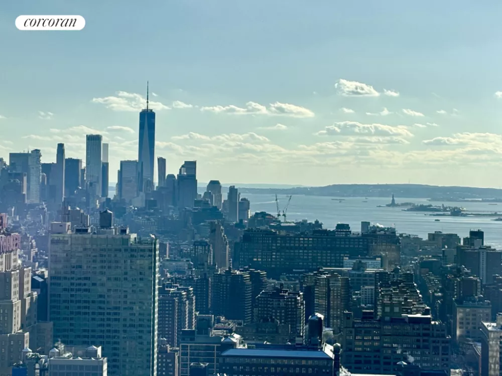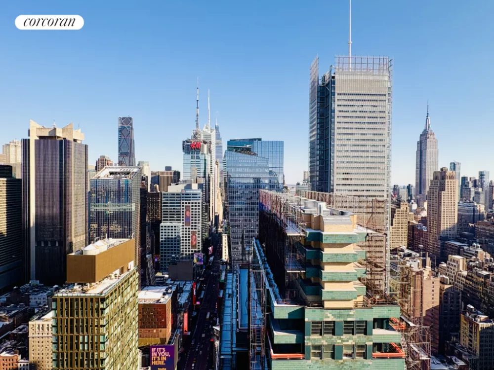 Welcome home to your castle in the sky! This 1-bedroom, 1-bath corner apartment is located on the 51st floor of the Orion Condominium, a luxury residential tower in Midtown West, located at 350 West 42nd Street. The E-line unit is the best in the building due to its panoramic eastern and southern exposures, which offer breathtaking views of the Hudson River and iconic city landmarks such as the Empire State Building, One World Trade Center, and Times Square. Floor-to-ceiling windows showcase unobstructed views of magnificent sunrises and sunsets.