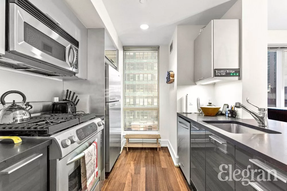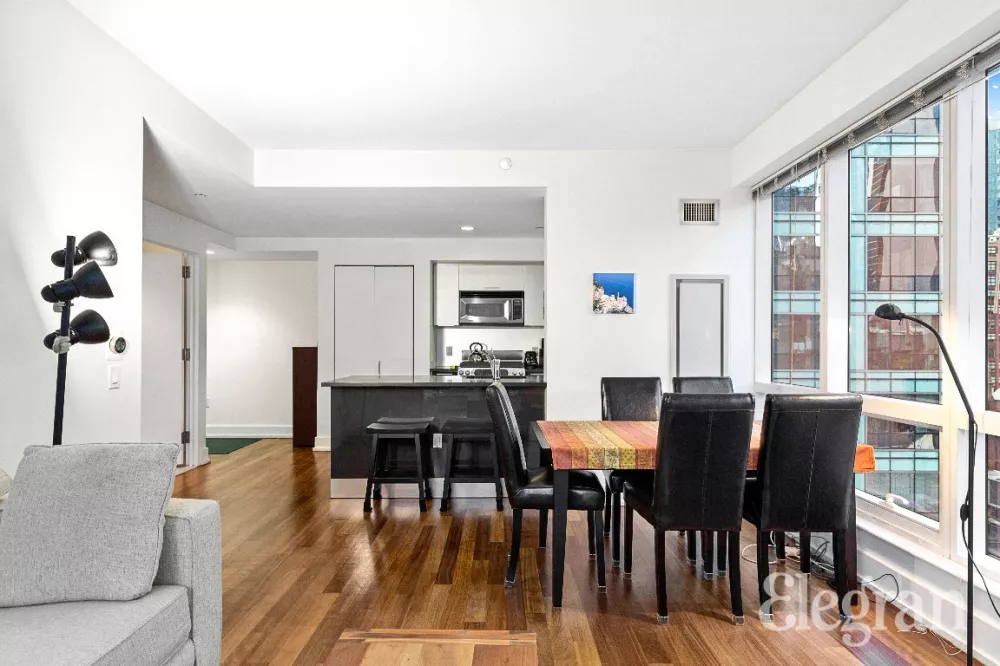 Sun-blasted corner 1 bedroom unit in the Orion Condominium on West 42nd street. Apartment features floor-to-ceiling windows with open South and East views, providing tons of light. Open chefs kitchen with granite counter tops, stainless steel appliances. Bathroom features Waterworks fixtures and a Kohler soaking tub.