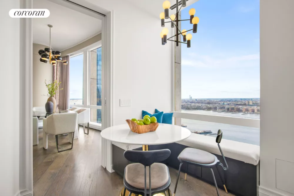 In addition, residents will have access to 22,000 square feet of luxurious private amenities including a residents-only fitness center with a stretching and yoga studio, serene meditation room, business center and boardroom, elegant cocktail lounge and bar, screening room with wet bar, golf simulator lounge and a grand terrace and private dining room with catering services overlooking the Hudson River with stunning sunset views.