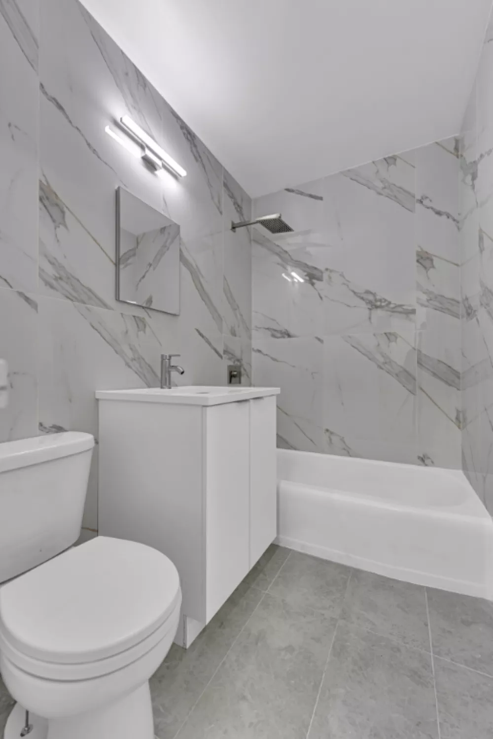 Stylish Bathroom: Features a combined tub/shower and modern vanity.