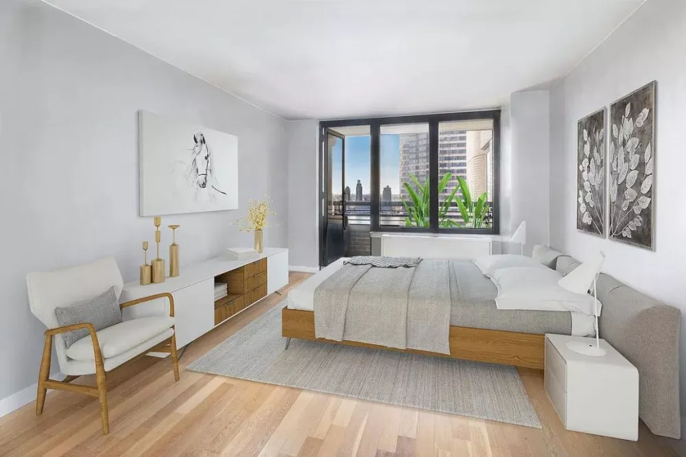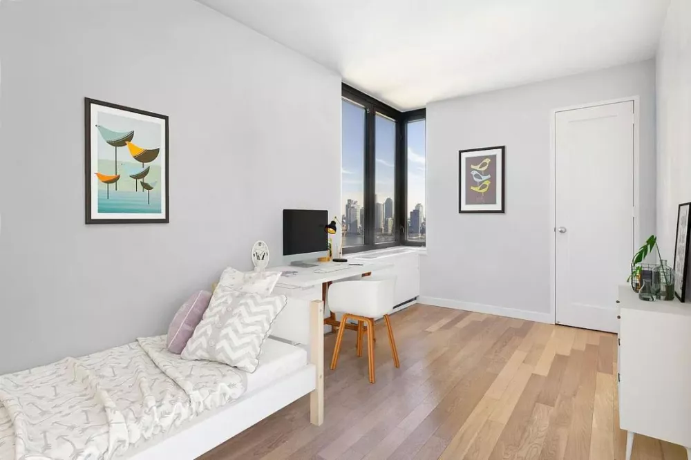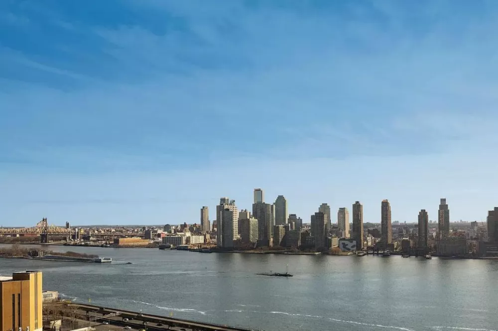 Enjoy spectacular East River views from this expansive two-bedroom, two-bath condo, located on a high floor for added privacy and unmatched vistas. A grand entrance gallery leads you into this beautifully appointed home, where stunning wood floors enhance the elegant atmosphere. The large living room, with oversized bay windows, invites an abundance of natural light and offers breathtaking vistas of the city and the East River. The second bedroom comfortably accommodates a queen-sized bed.