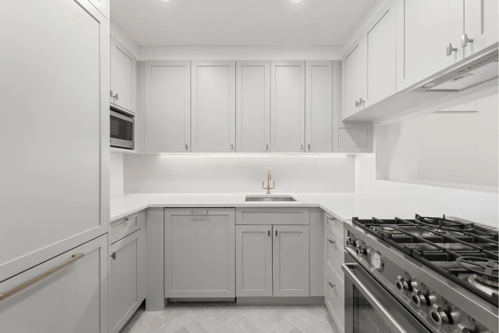 Turn-key, Brand New Renovated move-in ready pre-war 1 bed, 1.5 bath condo home awaits you. This newly renovated residence exudes charm and grace, featuring high ceilings and abundant natural light on a quiet tree lined street. The brand new high-end European custom kitchen with a pass-through window. Appliances (refrigerator, stove, dishwasher) are from Bertazzoni, an Italian manufacturer which is known for its style, elegance, and high performance. GE Microwave also included. The kitchen is fully paneled with custom cabinetry, including a separate wine glass cabinet, offering a clean and modern look to the space. Engineered stone countertops lead to a seamless stone backsplash. Luxury brushed nickel hardware along with a Lefroy Brooks faucet and a herringbone pattern floor tile finish off the high-end appeal. In addition to fashion, this kitchen offers function. The pass-through window includes an additional overhang counterspace creating the perfect breakfast nook with stools for casual dining by day and a bar/buffet space for entertaining at night. Finally, the kitchen offers a well-lit workspace with four recessed lights and undercabinet lighting.