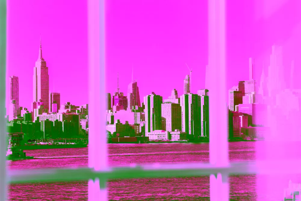 The interior of the loft-like condos at the Austin Nichols House perfectly blend the timeless historic qualities of the residence with a modern twist. You’ll find high beveled concrete ceilings, expansive floor spaces, and concrete columns in some lofts. It is evident that the building has historic relevance, having once operated as a Grocery Trade and then Bourbon Distillery. B-312 itself boasts permanent spectacular views of Manhattan through 3 tall cross pattern windows. Note that the interior has been modified with new hardware and cabinet fronts in the kitchen, new modern lighting installed in each room, added storage space in the primary bedroom, additional built-in storage with a murphy bed in the second bedroom, and a new Miele washer/dryer.