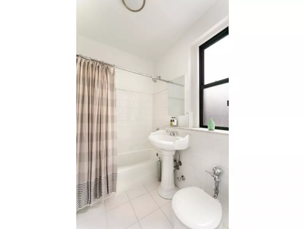 The entry foyer to the apartment opens into a living room with picture molding and south-facing windows with plenty of good light. The bright bedroom has two large closets and lots of light from two large windows that look out onto your quiet, tree-lined street. The bathroom features traditional subway white tiles with a deep soaking tub.