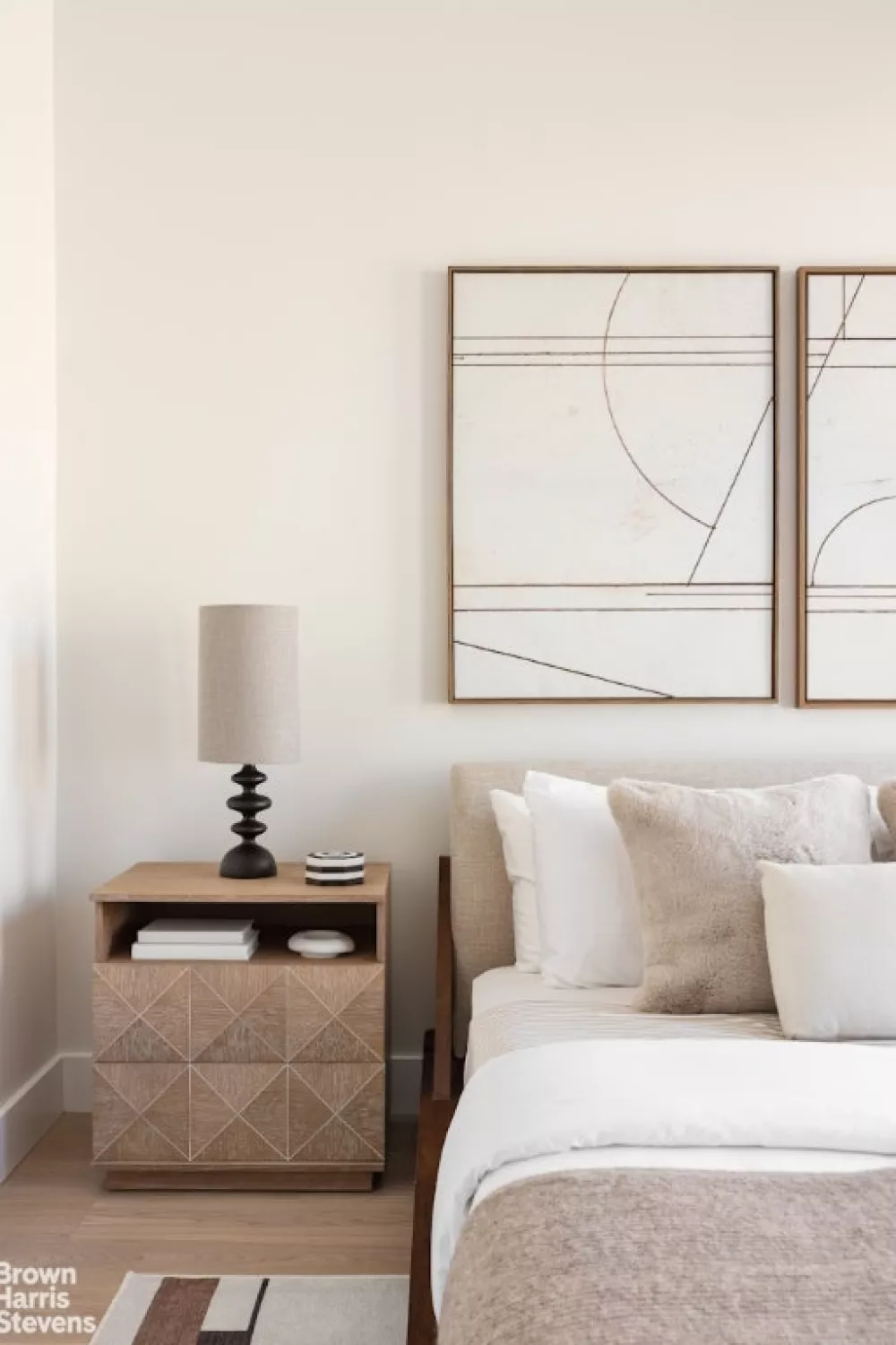 The luxurious bathroom is designed as a private sanctuary, boasting a modern wood vanity, sleek black Moen fixtures and a contemporary lighted mirror. The spacious bedroom features large sunny windows and a large closet.