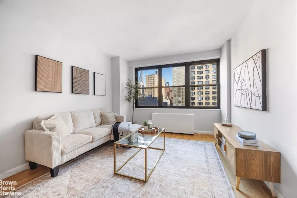 This beautifully appointed 1-bedroom home boasts stunning open views of the Empire State Building and Chrysler Building, along with abundant north-facing natural sunlight. Residence 9L at the Spruce Ridge House features modern renovations and a spacious layout with over 600sqft. The entry foyer offers two large closets and leads into a built-in home office, perfect for those who work remotely or from home some days.