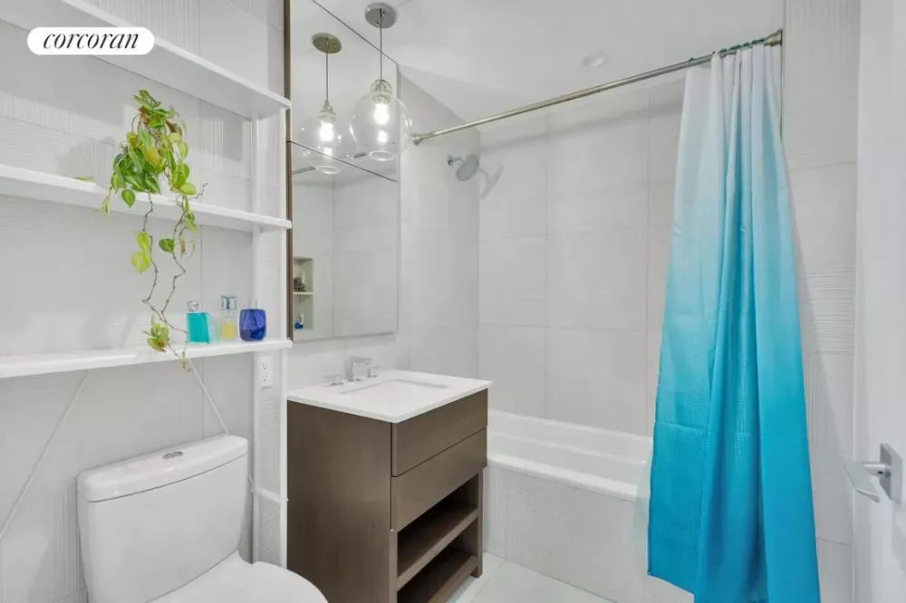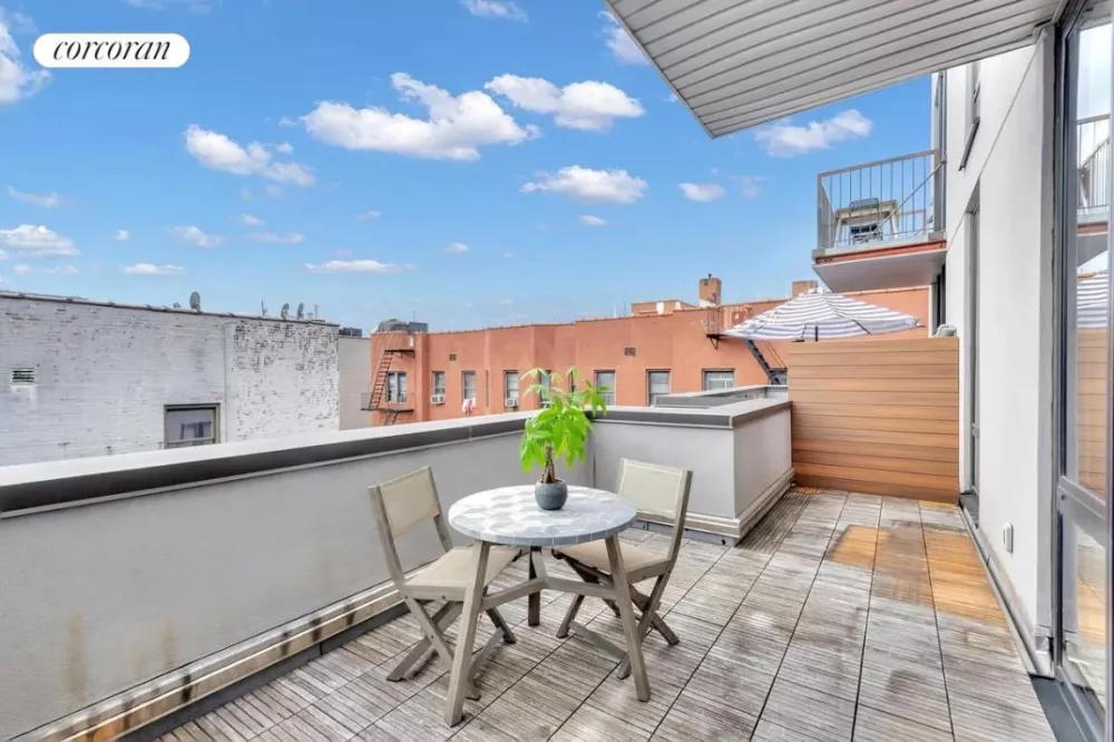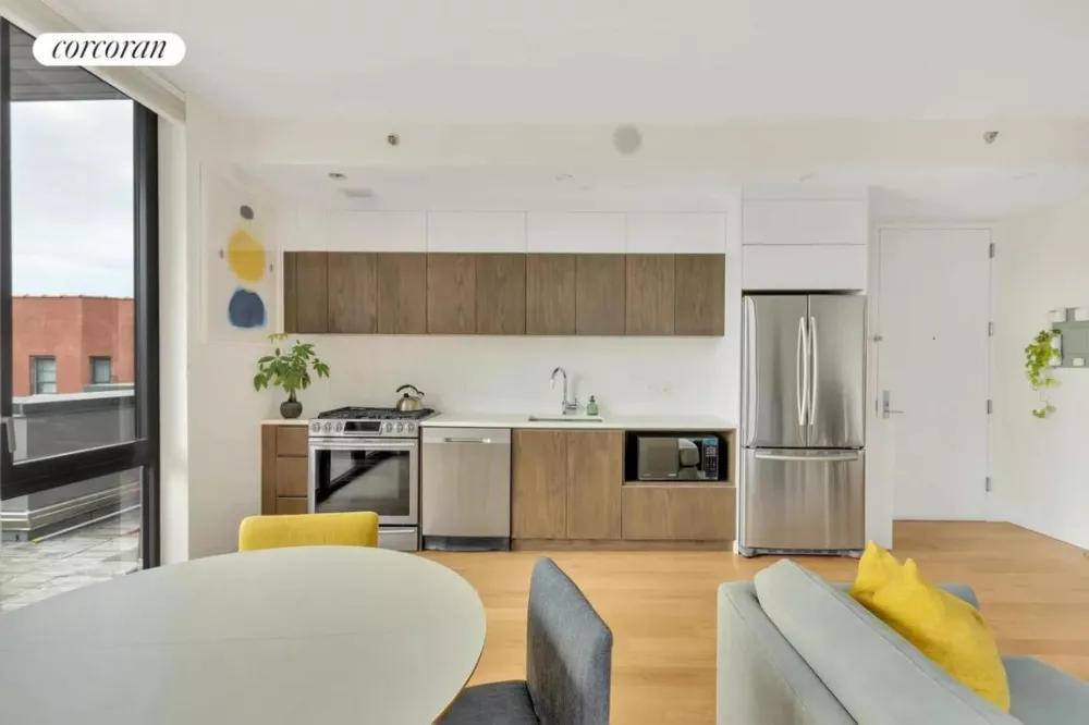 Apartment 7H is a large, west-facing corner unit, in the back of the building allowing the living area to be filled with sunlight through out the day. With tons of space for your open concept living room/dining room setup and room in the bedroom for both a king size bed and home office; it also features a marvelous chef's kitchen (with stainless steel Samsung appliances and tons of cabinets), and best of all - a huge private terrace. Hardwood floors, floor-to-ceiling windows, 2 HVAC units, bluetooth-enabled wireless speakers, honeycomb floor-to-ceiling shades throughout the unit (and blackout shades in the bedroom). An in-unit, stackable washer & dryer add to the convenience of this apartment.