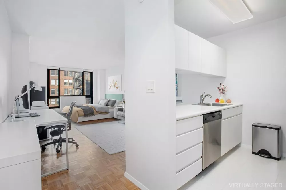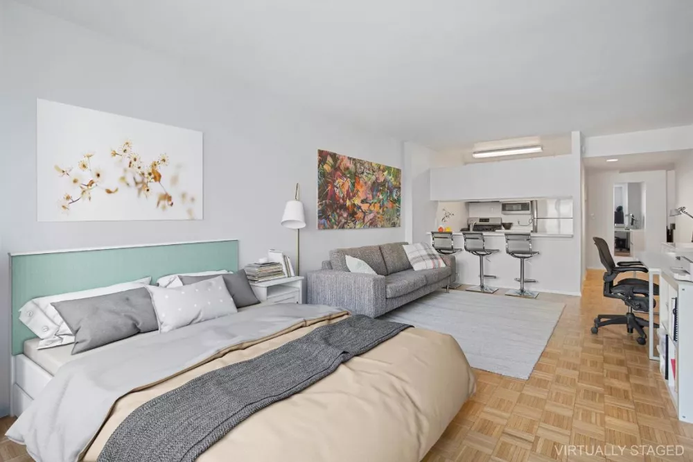 One of the largest studio homes, having city views facing north, you will be able to create a sleeping and living area without feeling crowded. This apartment also receives great light and allows a private washer/dryer with management approval. The pass-through kitchen gives a sense of openness, while also having ample cupboard and cabinet space. There is a new stainless-steel stove/oven, along with a stainless-steel refrigerator, dishwasher, and microwave. The bathroom is outfitted with a medicine cabinet and vanity with storage, as well as a tub/shower. There is a large entry closet and walk-in closet, providing lots of storage for clothing, shoes, suitcases, and other items. Pets are welcome. There is an assessment for capital improvements at $92.84 until December 31, 2025.