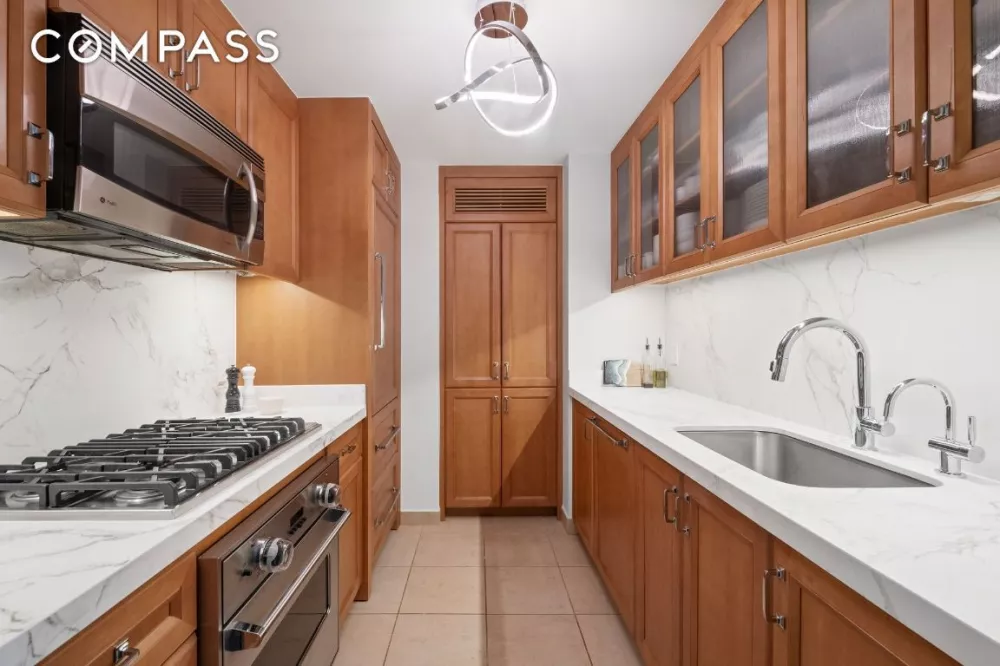 Sitting on the 16th floor, this 2 bedroom, 2 bathroom home has been recenly updated. The entryway features a coat closet, new Miele Washer/Dryer, and recently renovated second bathroom. The chef’s kitchen, with custom made wood cabinetry and new Dekton countertop and backsplash is complete with top-of-the-line Viking oven and range, Subzero refrigerator and Miele Dishwasher.