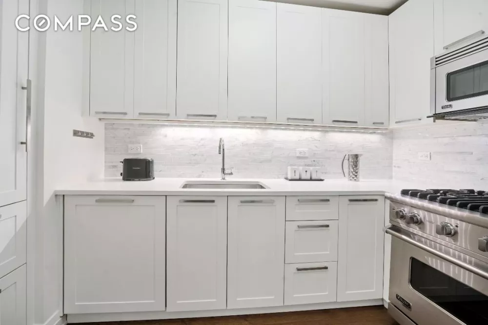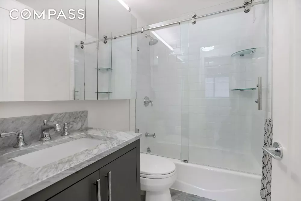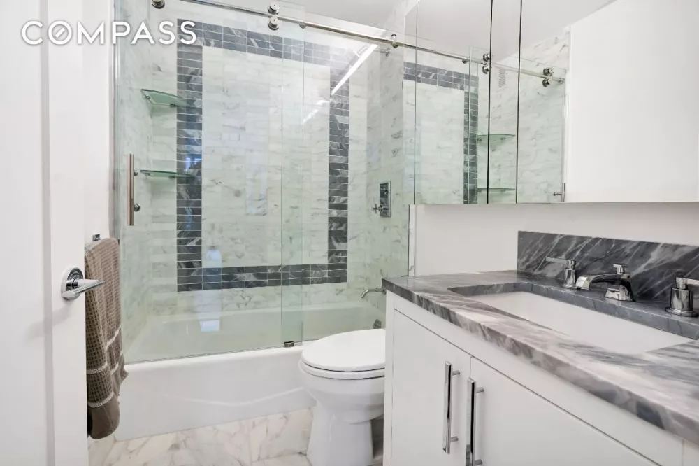 Head to the owner’s suite to discover king-size proportions, a massive walk-in closet and an en suite bathroom with marble detailing, floor-to-ceiling tile, a glassed-in tub/shower and a roomy vanity topped by a wide medicine cabinet/mirror. The secondary bedroom boasts a spacious closet and easy access to the well-appointed guest bathroom. A convenient coat closet and in-unit LG washer-dryer complete this superb uptown home.