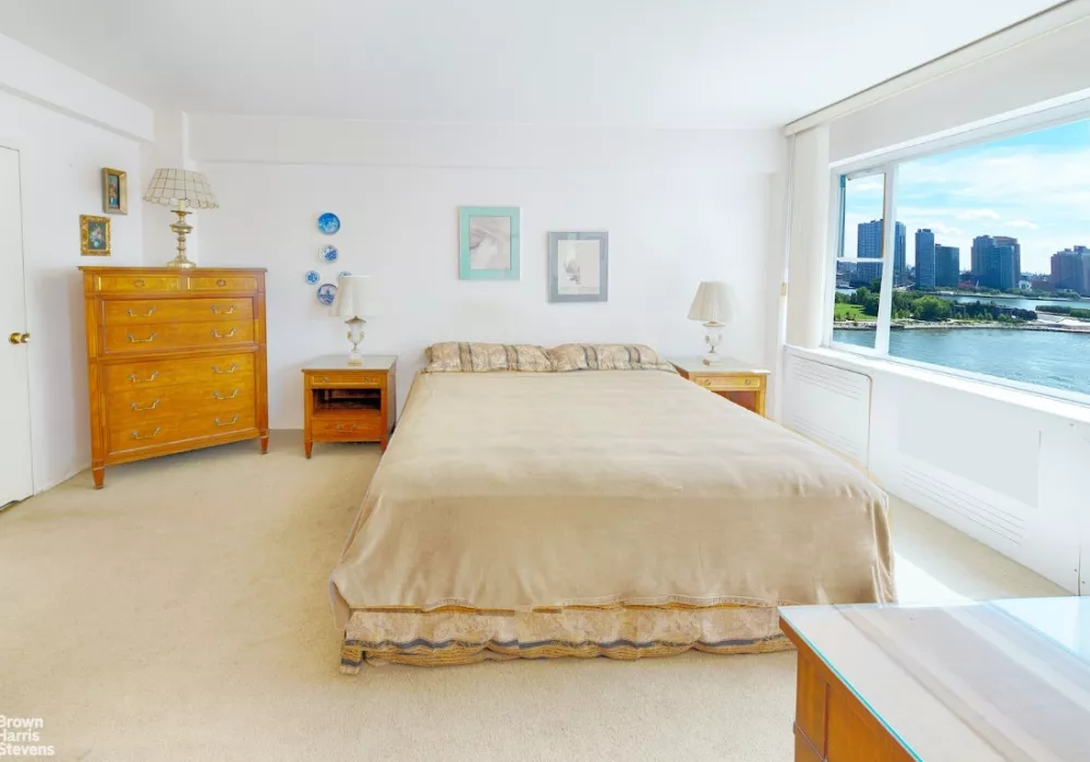 This spacious 1-bedroom/1.5 bath apartment on a high floor offers sunny views overlooking the East River, Roosevelt Island and all points east over Queens and beyond. This home has an oversize living room that is ideal for entertaining, a galley kitchen, a separate dining area, a large bedroom with en-suite bathroom, a one-half bath for guests, great closet space including two walk-ins, and beautiful parquet floors throughout. In need of some updating.