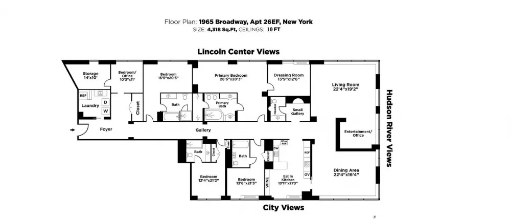 Welcome to a rarely available mint condition, 5-bedroom, 4.5-bathroom high-floor double corner residence in the prestigious Grand Millennium condominium. This dramatic 4,300-square-foot home on the 26th floor features a museum-like entry gallery perfect for art lovers and offers magnificent unobstructed views of the city, Hudson River, New York skyline, and Lincoln Center. Meticulously renovated to the utmost standard, every detail has been carefully attended to. Conveniently located in the heart of the Upper West Side by Lincoln Center, the apartment boasts 10-foot ceilings, and fabulous sunlight and views from every room.