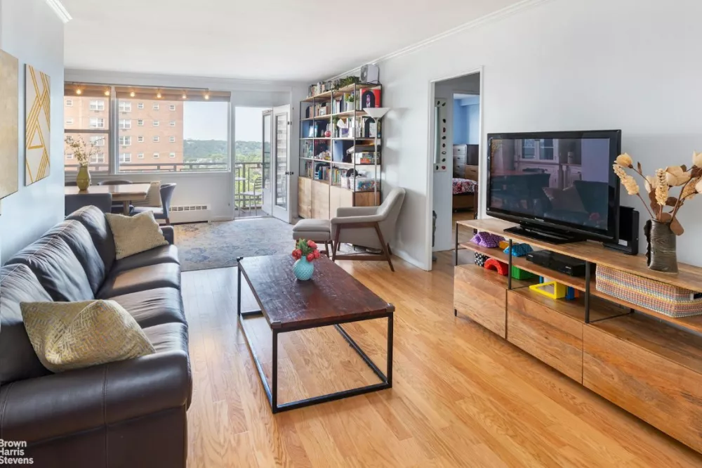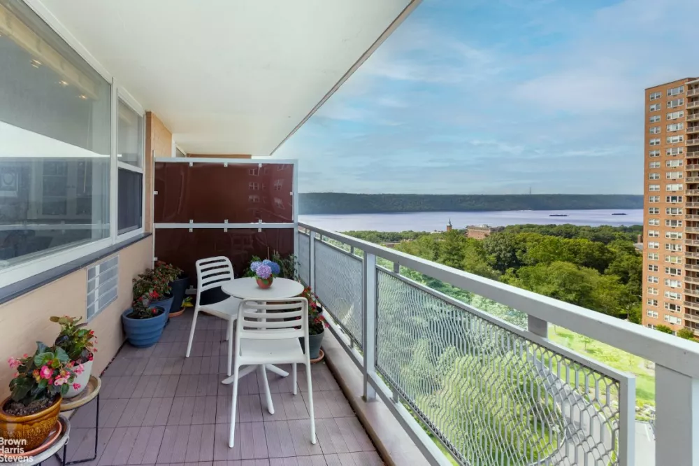 High floor with AMAZING views!! This 11W is the largest of the 2-bedroom, 1-bath apartments and it checks all the boxes for what you are looking for in a renovated home with an oversized terrace designed for relaxation. Enjoy stunning views of the Hudson River and Palisades. Flooded with natural eastern light in the morning and peaceful afternoon sun to the northwest.