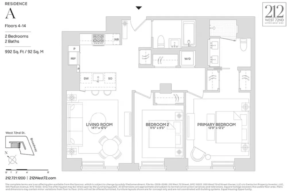 Exclusive Sales & Marketing Agent: Douglas Elliman Development Marketing. The complete terms are in an offering plan available from the Sponsor, which is subject to change by a duly filed amendment. File No. CD19-0069. 212 West 72 Street, NYC 10023. 200 West 72nd Street Owner, LLC c/o Centurion Property Investors, LLC, 595 Madison Avenue, NYC 10022. Equal Housing Opportunity.