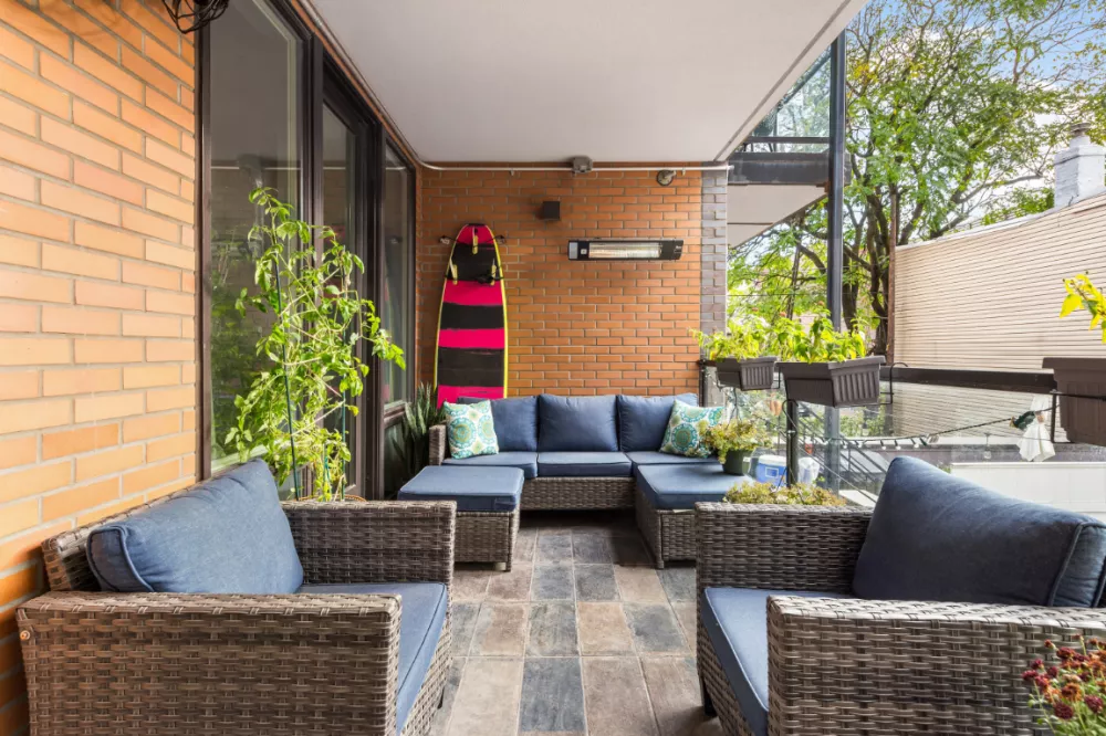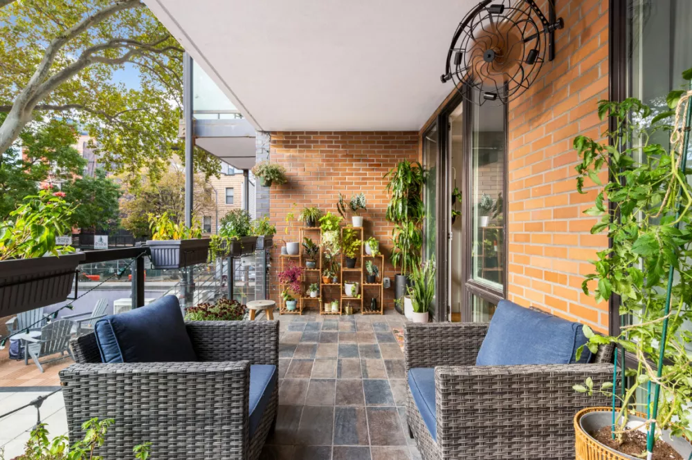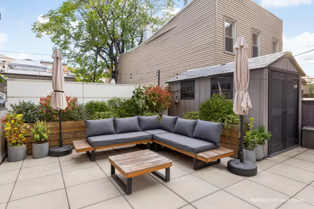 MOTIVATED SELLER-Outdoor Lover''s DREAM. Live in an impeccably designed 2 Bedroom 2 Bathroom prime Greenpoint condo that features a MASSIVE private back yard that will become your own personal outdoor oasis. The sun splashed back yard comes equipped with a large modern storage shed and has both electrical outlets and a dual spigot hose connection for all your gardening and entertaining needs. Apartment 2D incredibly also has a SECOND private outdoor space- a covered terrace perfect for dining or lounging just off the living room that has a hard wired fan for those hot summer days and a built in space heater affixed on the wall for those cool Spring and Fall nights.