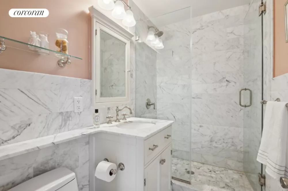 The expansive primary bedroom is a true retreat, boasting double exposures with tranquil water views. Generously sized, it easily fits a king bed along with additional furnishings. A custom-built walk-in closet is practically a room of it's own, and ensures effortless organization, while the marble en-suite bath provides a spa-like escape at the end of the day.