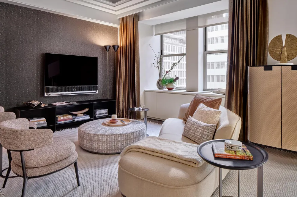 Waldorf Astoria Residences New York offers an exclusive partnership with B&B Italia, offering curated, fully furnished residences available only to residents. Residents have the option to purchase furnishings in two color declinations, "Chiaro" or "Scuro," for both warm or cool palettes, and an elevated arrangement of accents and accessories to complement the furnishings.