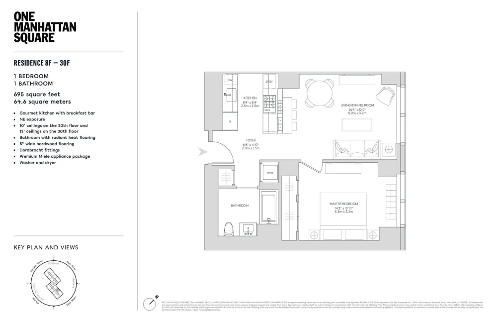 ONE MANHATTAN SQUARE OFFERS ONE OF THE LAST 20-YEAR TAX ABATEMENTS AVAILABLE IN NEW YORK CITY Residence 16F is a 695 square foot one bedroom, one bathroom with an open gourmet kitchen and breakfast bar. This spacious residence faces Northeast with East River and Williamsburg Bridge views. Warm, modern... See more