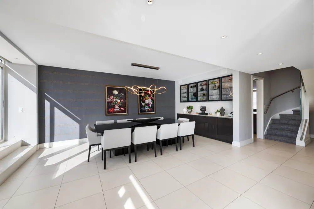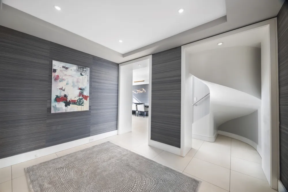 Welcome your guests in a large foyer with ample closet space. Directly off the foyer you enter the massive living room and dining room complimented by a wall of windows. It opens to a private terrace that spans the entire length of the living space. This is indoor/outdoor living at its best. Adjacent to the Dining Room is a state-of-the-art modern chef's kitchen, complete with Sub Zero refrigerators, double Wolf wall ovens, 4-burner gas Wolf cooktop along with a two burner electric cooktop and a two burner induction cooktop for every possible cooking need. There are also two dishwashers, double sinks, warming ovens, steamers, built-in espresso and cappuccino maker. This amazing kitchen is complemented with an eat-in dining area perfect for informal meals. Just off the kitchen is the oversized second living room-too large to call a den! The nearby fifth bedroom with ensuite bath is the perfect guest suite or home office. And as an added bonus, this level has a private service entrance and mudroom, an almost unheard-of luxury in the city!