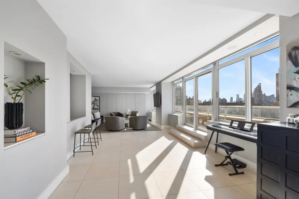 A house in the sky, perfectly situated in the heart of the Upper West Side. This duplex apartment, seamlessly combined from three units, spans the 17th and 18th floors at The Boulevard. Measuring over 4,600 square feet, enjoy an entire level of living space including an open plan living room/dining room with vast open exposures to the private 45 foot terrace. This level also features a state-of-the-art eat-in kitchen, den and a guest bedroom/home. The upper level features a luxurious primary bedroom, primary bath, with three bedrooms and two full baths in addition. This is truly a masterpiece in city living.