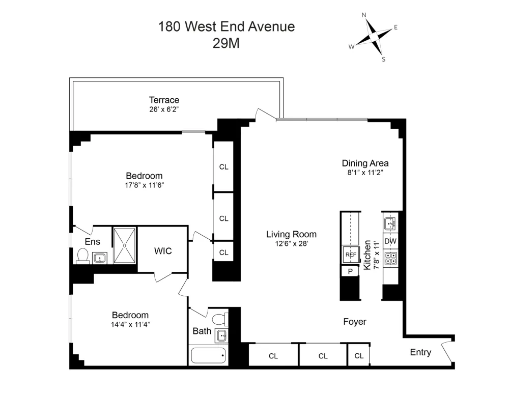 Space, light, and storage make this high-floor home at 180 West End Avenue effortlessly livable. Offering Lincoln Towers’ largest two-bedroom, two-bath layout, 29M includes a windowed dining alcove that easily converts into a third bedroom.