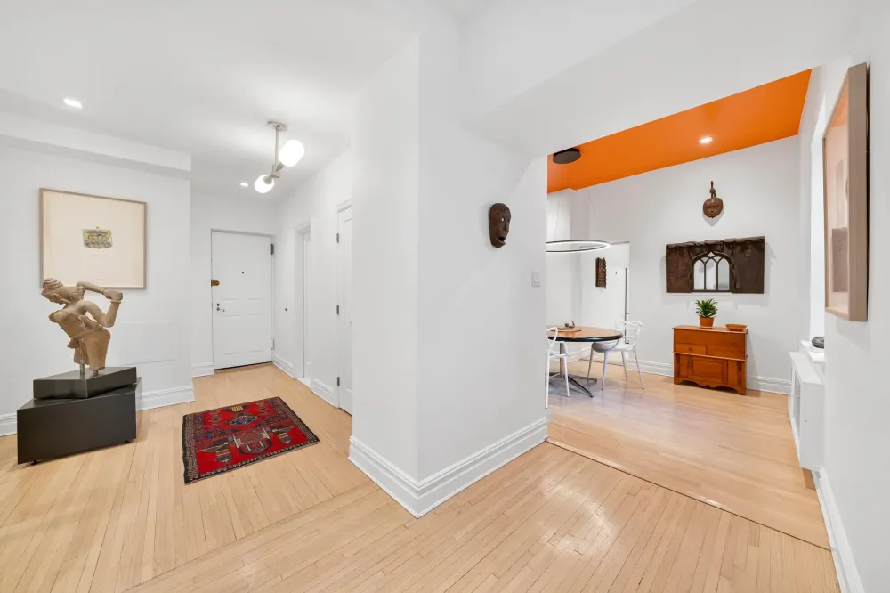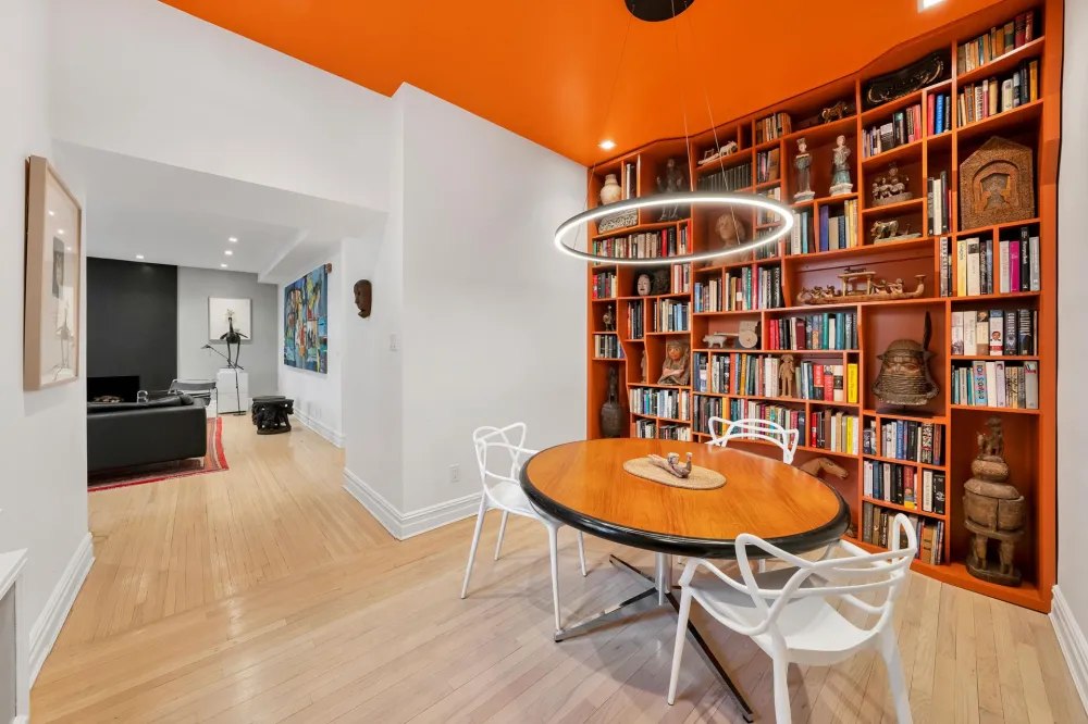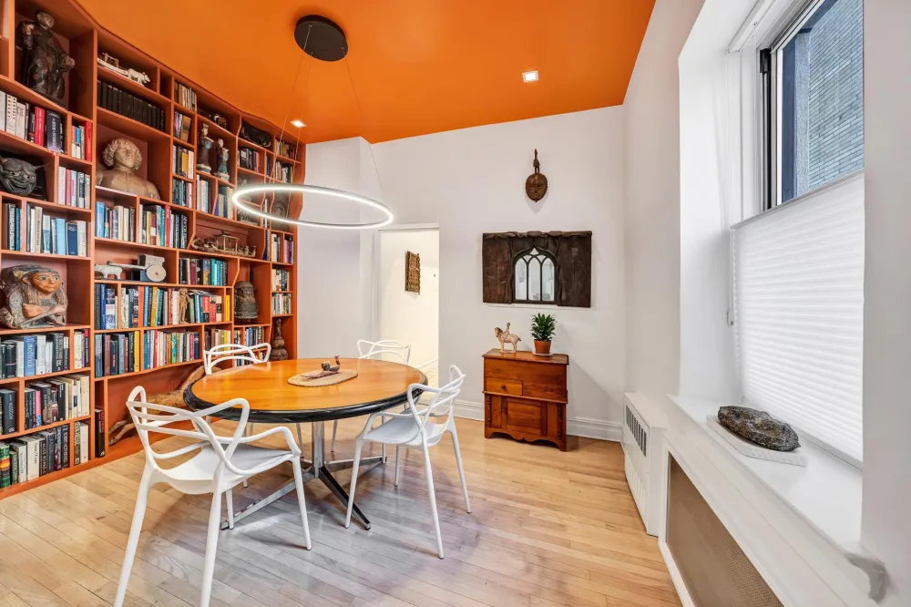 The large, separate windowed kitchen offers new cabinets, stone counter tops and new appliances. The separate windowed dining room includes custom artist inspired floor-to-ceiling bookshelves that are offer endless opportunities to showcase books, art or personal effects. Beautifully refinished bleached oak floors throughout both levels of the entire apartment add to the uplifting ambiance found in each room.