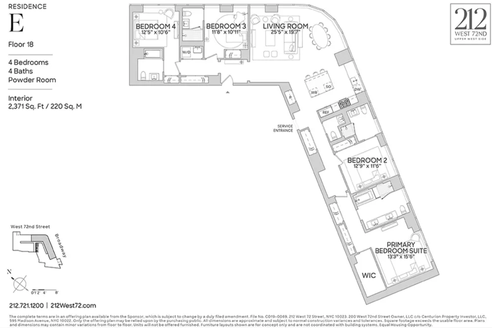 Exclusive Sales & Marketing Agent: Douglas Elliman Development Marketing. The complete terms are in an offering plan available from the Sponsor, which is subject to change by a duly filed amendment. File No. CD19-0069. 212 West 72 Street, NYC 10023. 200 West 72nd Street Owner, LLC c/o Centurion Property Investors, LLC, 595 Madison Avenue, NYC 10022. Equal Housing Opportunity.