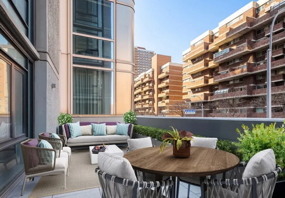 Apartment 2B offers 1,190 square feet of thoughtfully designed living space, featuring floor-to-ceiling windows and a private setback terrace-your own personal oasis.
