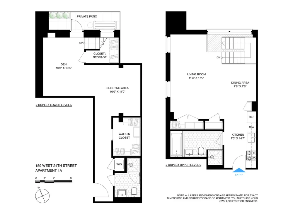 An uncommon level of sophistication will be experienced in this Chelsea Duplex Loft at the Carriage House, a boutique condominium, with an INDOOR PRIVATE PARKING SPACE INCLUDED! This townhouse-style loft home features 11.5' high ceilings, 7" wide plank solid oak floors, oversized windows, central air conditioning controlled by Nest, two full bathrooms, and offers high-end finishes throughout. The main floor has a large open living/dining room, oversized California closet and coat closet, & Chef's kitchen complete with custom wood cabinetry, top of the line stainless appliances: Wolf gas cooktop and convection oven, Subzero refrigerator, and Bosch dishwasher. Also on the main level is a spa-like bathroom featuring Carrara and Absolute White marble accents, Zuma soaking tub, radiant heating and a separate enclosed shower with rain fixture. On the lower level, the tranquil bedroom suite with additional sitting area has a walk-in California closet plus a large additional closet, a tastefully renovated full bathroom featuring custom Carrara and Absolute White marble shower, and a Bosch washer and dryer closet located just outside the bath. And finally, a small private patio provides a little outdoor space for you to take in some fresh air or add a bit of greenery to your decor. The Carriage House has a common landscaped roof deck complete with furniture and grill, as well as part-time doorman/superintendent, video intercom, private parking garage and storage (each unit includes one bin). Prime Chelsea location convenient to 1, M, F, E and C trains, 23rd Street bus and Whole Foods, Fairway Market, Trader Joe's and more!