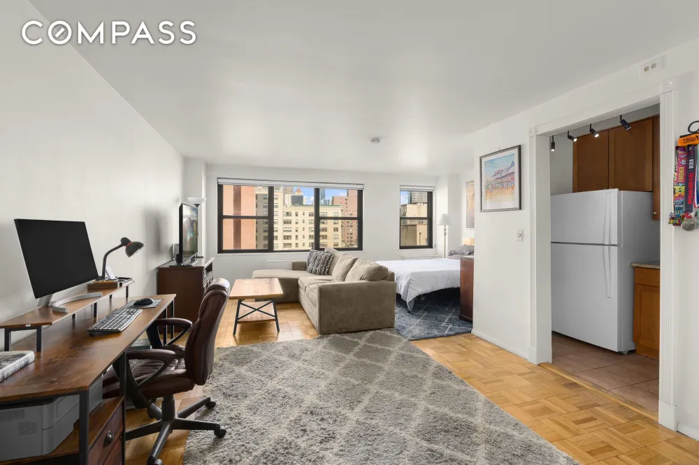 Flooded with natural light and offering sweeping city views, this spacious alcove studio instantly draws your attention with its airy feel and generous layout.
