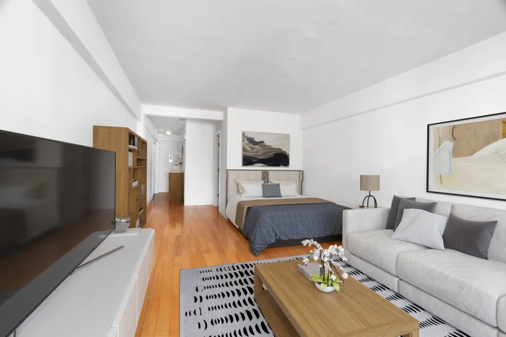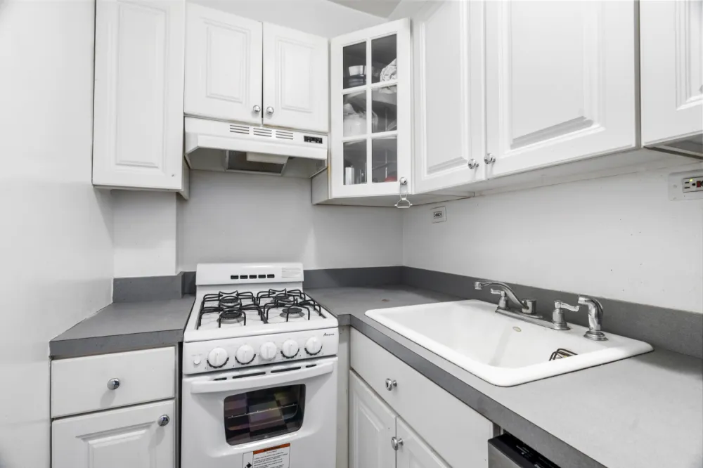 This spacious apartment is larger than your average studio and offers abundant storage: there's an entry foyer with two large closets, plus a walk-in dressing area. The thoughtfully designed kitchen boasts an oversized stainless steel refrigerator, new dishwasher, gas stove, and ample cabinetry for efficient storage.