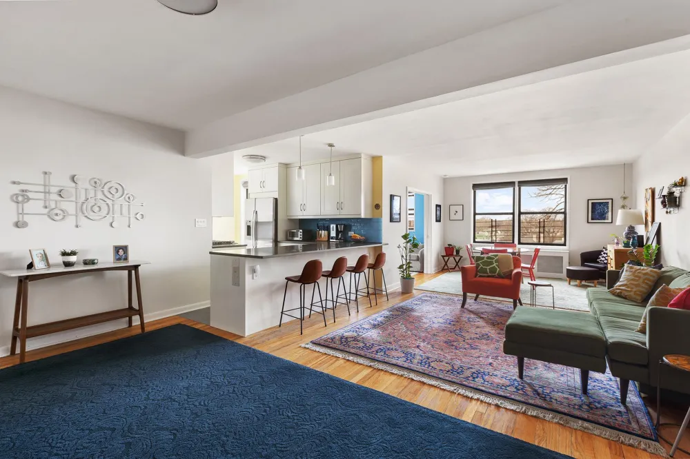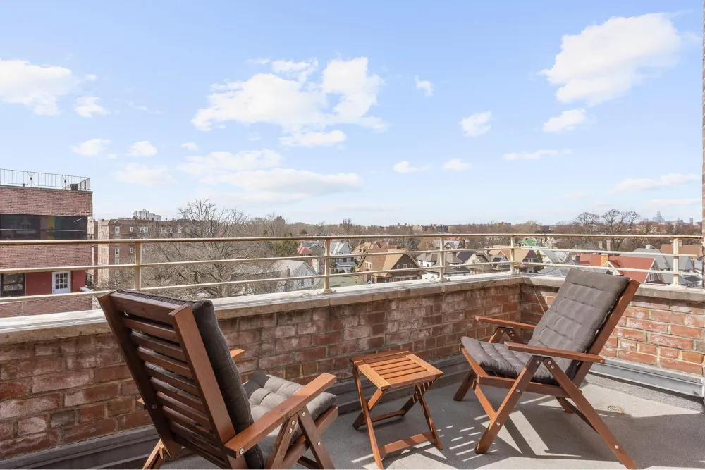 Looking for more space in the city near transportation? Here you can have it all with sweeping views of the Brooklyn and Manhattan skyline from the comfort of your extra -large apartment. Step into the spacious entryway with two large closets on both sides of the doorway. The open kitchen and living space greet you warmly and offer a breadth of living space that's hard to come by. The renovated kitchen has a window, stainless appliances, and lots of counter space for easy meal preparation. Have your meals at the large kitchen countertop or, eat at the dining room table near the window with northern views of the homes of Ditmas Park as well as Empire State Building and Lower Manhattan. The third bedroom has the flexibility of being a home office and/or guest room. Step out onto your terrace with views of the Verrazzano Bridge to the West and more Manhattan views to the north. The spacious primary bedroom has a western exposure, two large closets and, an en-suite bathroom with a window. The second bedroom has a closet, a western exposure and is located across the hall from the second bathroom that has a full-sized tub and shower. There are a total of eight closets throughout the entire apartment so, there's no need for additional storage. The building has a laundry room, a part-time door-man, live-in super, bike room, a common backyard and parking (waitlist). Close to Newkirk Plaza and the B and Q train as well as many shopping and dining needs along the Plaza. Close to Cortelyou Road with additional transportation stops, shopping and dining. Come move in and stay a while!