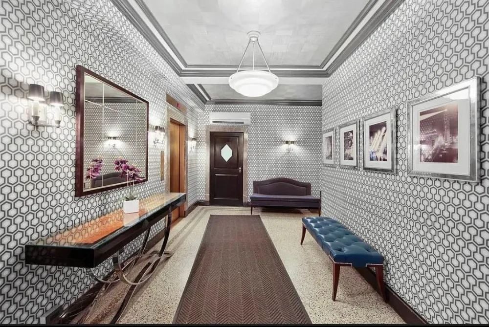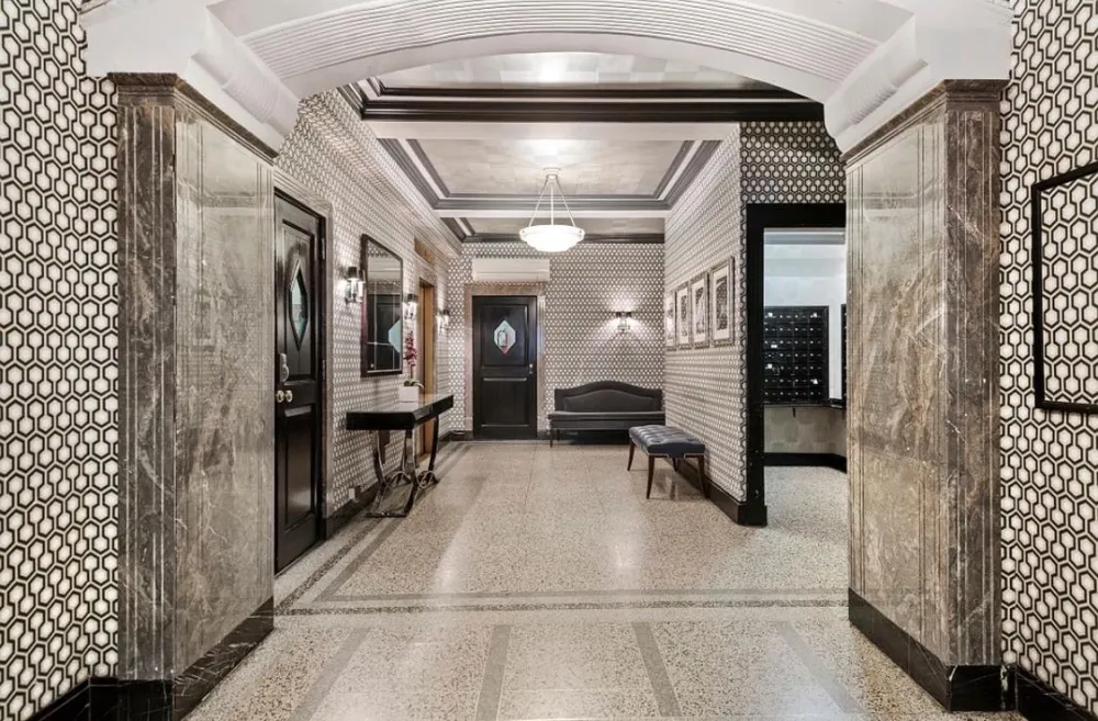 At approximately 800 sq ft, it is one of the most desired layouts in the building and a great value for an apartment of this caliber in a pre-war Art Deco building such as this. Once inside the lobby, you feel as if you were stepping inside a glamorous hotel lobby. The hallways are also designed in a way that gives you that boutique feeling.