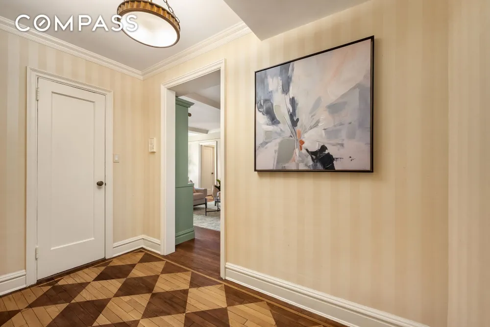 This distinguished full-service co-op, constructed in 1931, exudes old-world charm with its stained glass front doors and preserved entry hall featuring a stunning ornate ceiling design. Located on a picturesque block, the property offers impeccable services, including a full-time doorman, elevator operator, and live-in resident manager, ensuring a seamless living experience. Additional amenities, such as a bicycle storage room and a convenient laundry facility, make life in this boutique building both comfortable and luxurious.