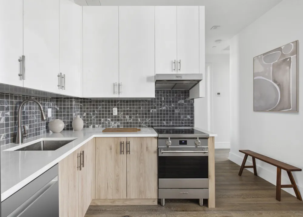 Enter an interior defined by elegance and functionality. With ceilings over 10" in height, the units are bathed in natural light. Modern finishes reflect a commitment to quality. The seamless flow of hardwood floors complements the open layout with a sense of spaciousness and warmth.
