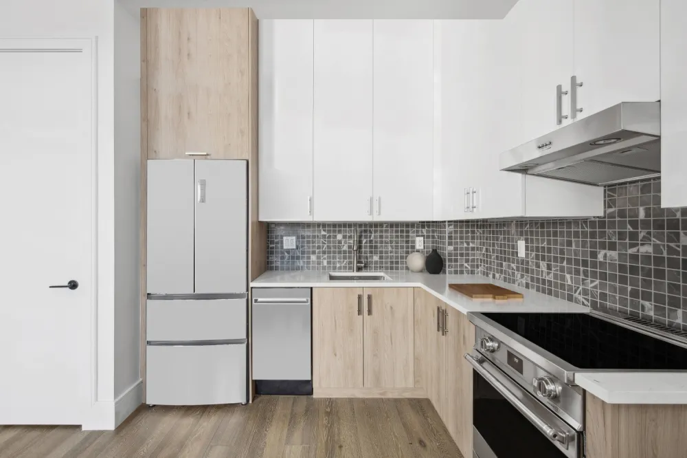 2R invites you to enjoy over 900 square feet of living space. At the heart of the home, the kitchen is a chef's dream, outfitted with Quartz countertops and custom cabinetry with ample storage. A top-of-the-line appliance package includes a stainless steel refrigerator and dishwasher alongside a SMEG oven and range. A convenient closet holds an LG washer and dryer, adding a thoughtful touch to elevate everyday living.