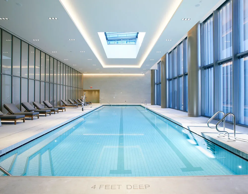 75-foot indoor pool, Whirlpool spa, sauna, and steam room for ultimate relaxation