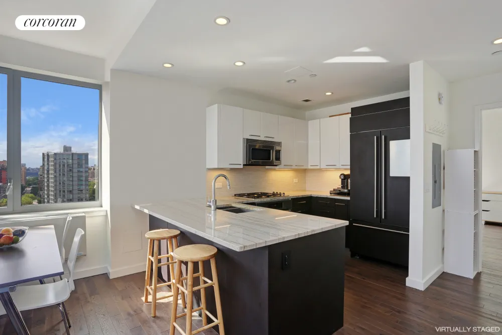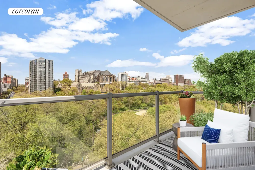 Perched high above Morningside Park and Central Park, this 3 bedroom 2 bath home has it all. The living room boasts oversized windows with stunning southern and western open views of Central Park and the Manhattan skyline. From the living room, a glass door leads to the wraparound corner balcony featuring ample seating space and breathtaking views of Central Park, Morningside Park and the Manhattan Skyline. The open chef's kitchen features a breakfast bar, custom cabinetry, Luce Di Luna countertops, and top of the line appliances including a Sub Zero refrigerator and Miele range/oven and dishwasher. The primary bedroom features an en suite bath, walk in closet and direct views of Morningside Park and the Cathedral of St. John the Divine. The second and third bedrooms feature bright and open southern views and a second windowed bathroom. Other features include hardwood floors throughout, thru-wall HVACs in every room and a washer/dryer.