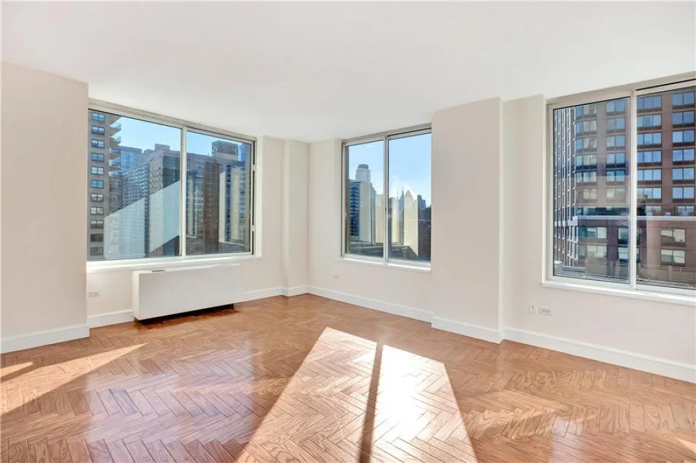Apt. 18E is a large, sun-filled one-bedroom, one-bath corner home with dual south and east exposures. Expansive corner picture windows frame stunning open city views, including a glimpse of the iconic Empire State Building, while bathing the apartment in natural light throughout the day. The layout of the E-unit makes it feel significantly larger than comparable one-bedroom units due to the three large windows in the living room. As an added bonus, the larger-than-average pass-through kitchen has plenty of counter and cabinet space. The apartment also has a full-size washer and dryer. 200 Riverside Blvd. is a full-service building with a doorman, concierge, and doorman on duty 24 hours a day, seven days a week. A well-equipped gym and indoor lap pool, as well as steam rooms, saunas, and locker rooms There is a playroom and a parking garage on-site. The 1/2/3 subway lines, Riverside Park, Central Park, Lincoln Square, and numerous popular Upper West Side activities are all nearby. Shown only upon request! Note: The apartment is occupied (RENTED) until February 28th, 2026.