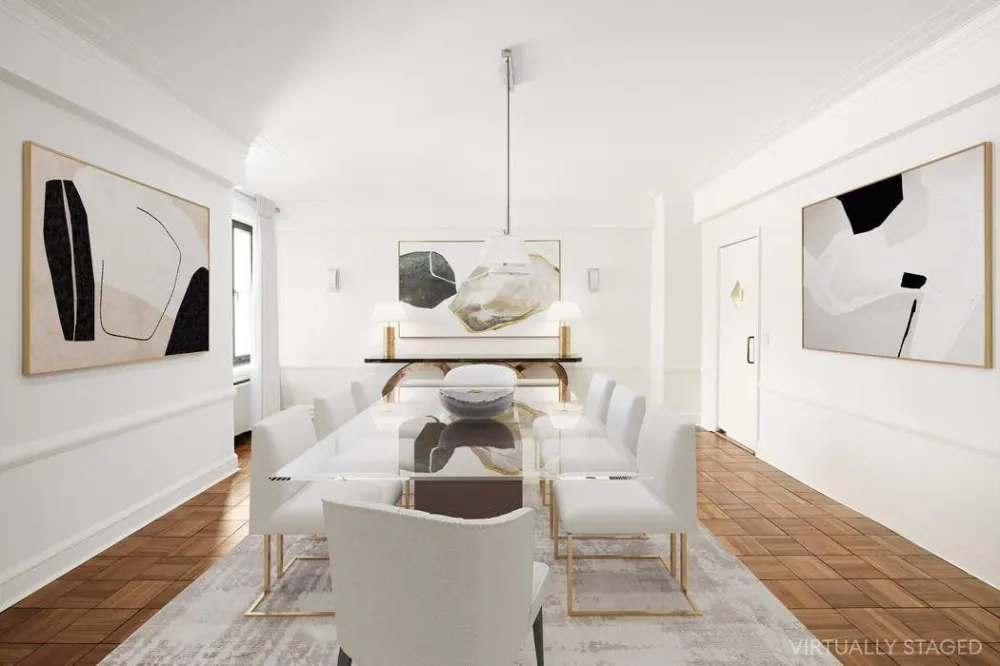 Exemplifying classic pre-war elegance, this spectacular and sprawling, sun-flooded home, at the storied Majestic, is perfectly suited for both comfortable living and grand entertaining. Bring your architect and create your dream home. The apartment features wonderful original details, generous room sizes, bright open exposures and a flexible layout. Accessed via a semi-private elevator landing, a gracious center Gallery welcomes you to this spacious nine-room home. The massive, sunken Living Room, centered by a decorative fireplace, is south facing and has space for multiple seating areas. Adjacent is a Library that could also be used as a fourth Bedroom. The formal Dining Room is the perfect setting for festive meals and gatherings.