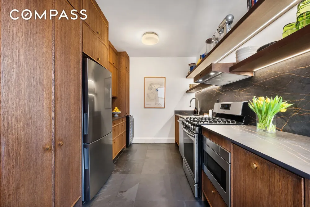 Contemporary design meets Art-Deco charm in this sunny and spacious, nearly 1300SF two bedroom residence. To call the entry a foyer doesn't do it justice. This generous space has two closets, room for any and all accoutrements, and functions as a large dining room. Charming arches lead to a sprawling living room with sufficient space for multiple couches, tables and electronics of any size, with room to spare. The windowed kitchen has been completely renovated with a modern appliance suite, tasteful stone counters and plenty of cabinet space. Two enormous bedrooms, including an en-suite primary, and a second, tastefully renovated full bathroom are located off the main living space.