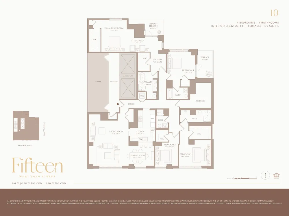 Presenting Residence 10—the only four-bedroom home at 15 West 96th Street. Spanning an entire floor, this expansive 3,542 SF residence boasts two private terraces and triple exposures, filling the interiors with natural light. Upon arrival, oversized casement windows welcome you, accentuating the 5 1/4-inch white oak herringbone flooring that extends throughout the kitchen, hallways, living, and dining rooms.