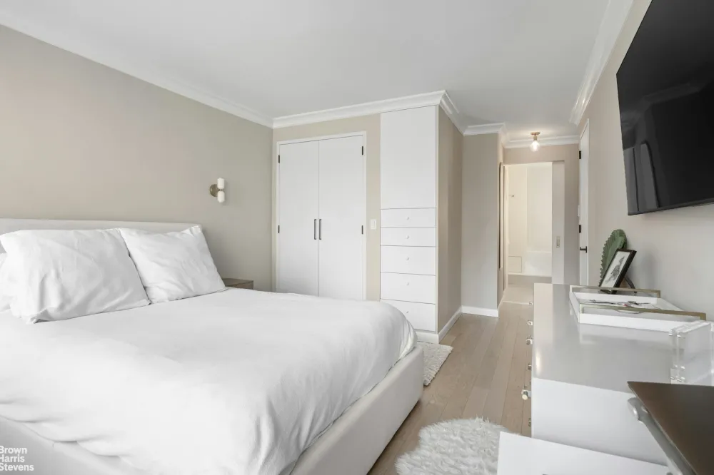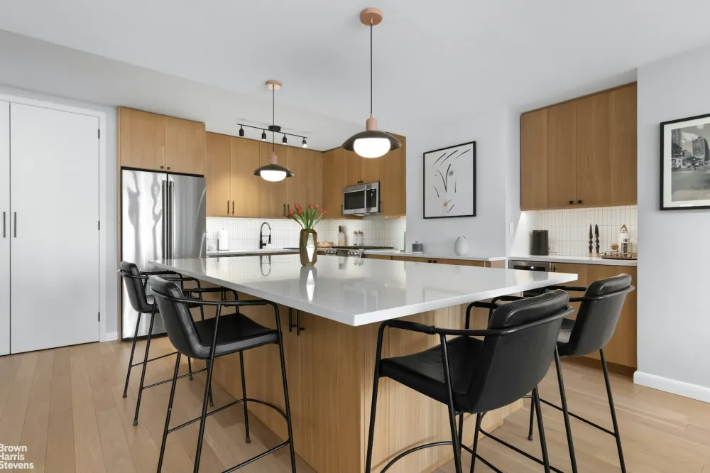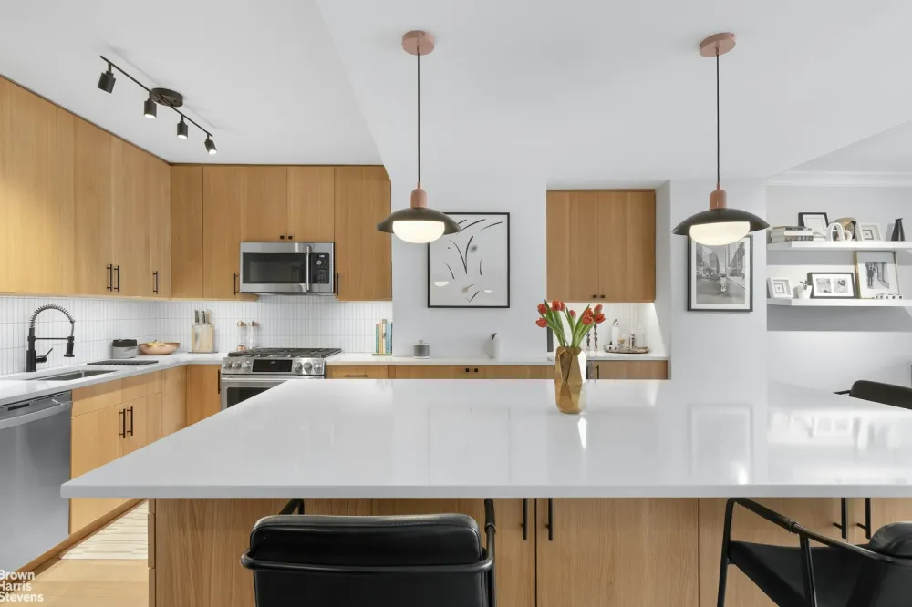This meticulously gut-renovated home at the highly sought after Kips Bay Towers Condominium is a true standout, offering a level of design and craftsmanship rarely seen on the market. Unlike any other apartment in the building, this designer level residence blends luxury, functionality, and impeccable attention to detail.. The condo features a state of the art, open kitchen with a 9-foot island that has both under counter cabinetry and built in outlets. The kitchen has custom wrapped around wooden cabinetry, tile backsplash, quartz countertops and features luxury appliances including a built in wine fridge. This kitchen has more storage than even the most discerning chef could need.