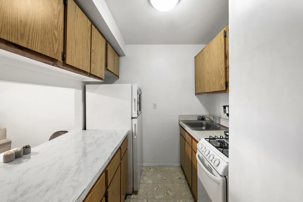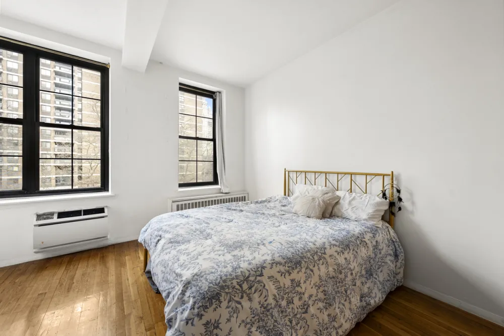 The L-shaped layout provides versatility, including a secluded sleeping or office alcove with the rare urban luxury of opening oversized windows to enjoy fresh air and the sound of chirping birds. The pass-thru kitchen and bathroom could benefit from updates, offering the opportunity to customize and modernize. Other residents have transformed their units by raising ceilings, exposing original beams, expanding the kitchen, and installing in-unit washer/dryers, giving this space unlimited potential.