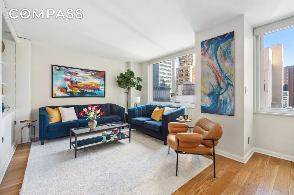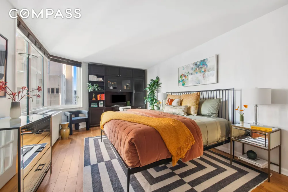 This is a rare opportunity to purchase a spacious, quiet, corner combination unit in the heart of Midtown East—priced below $1M and offering tremendous upside potential. With over 1,200 square feet of living space, two full bathrooms, dual home office areas, and multiple storage spaces, including a massive walk-in closet, this home lives like a 2-bedroom and can be converted to one in the future with ease.