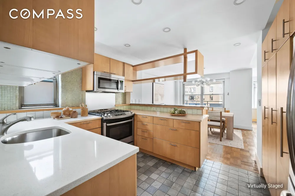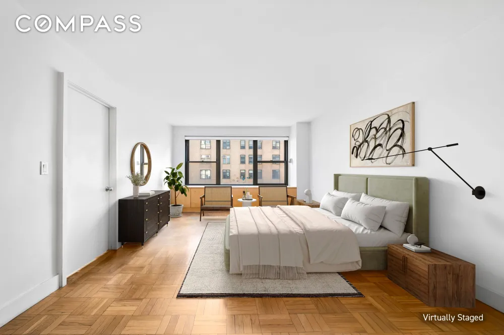 This floor plan presents an ideal foundation for customization, with the possibility of converting the existing layout into a three or four-bedroom home. The current bathrooms have been renovated and are in good condition, offering a solid starting point for any updates you may desire. With great ceiling height and a wall of south-facing windows, the residence is bathed in natural light throughout the day, creating a bright and airy atmosphere. The southern exposure provides direct views of the iconic Olivier Cromwell and Majestic Towers. Additionally, the private south-facing balcony off the living room extends your living space outdoors, creating the perfect setting for dining, entertaining, or relaxing while soaking in the Upper West Side.
