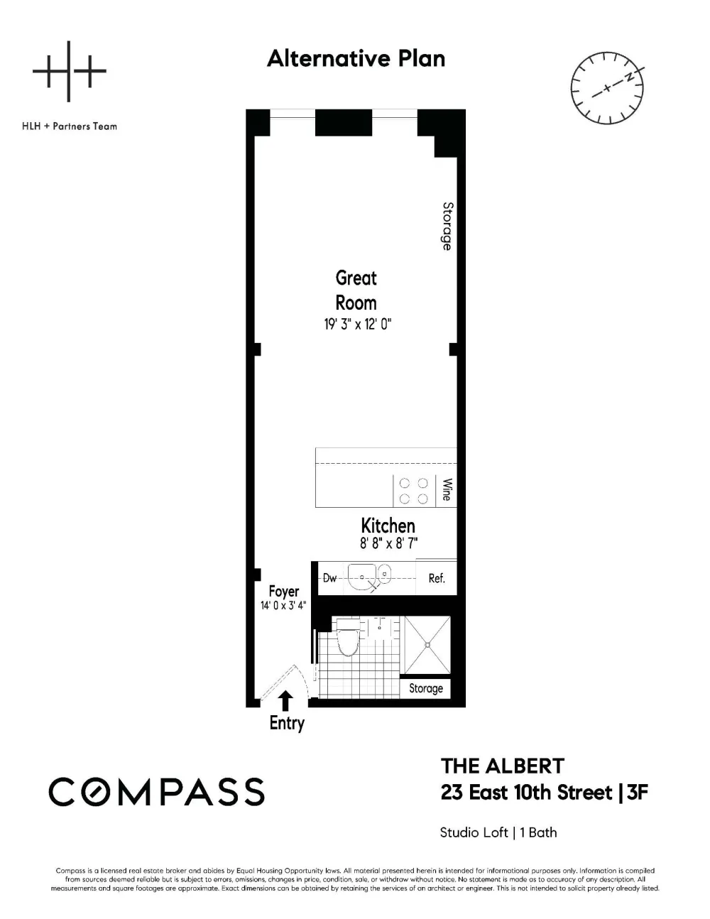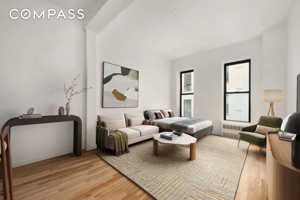 Residence 3F is a newly renovated spacious studio loft with soaring ceilings located in The Albert, just off University Place in the heart of Greenwich Village. Set on a charming tree-lined block, 23 East 10th Street is a full-service prewar doorman building, centrally located a few blocks from Washington... See more