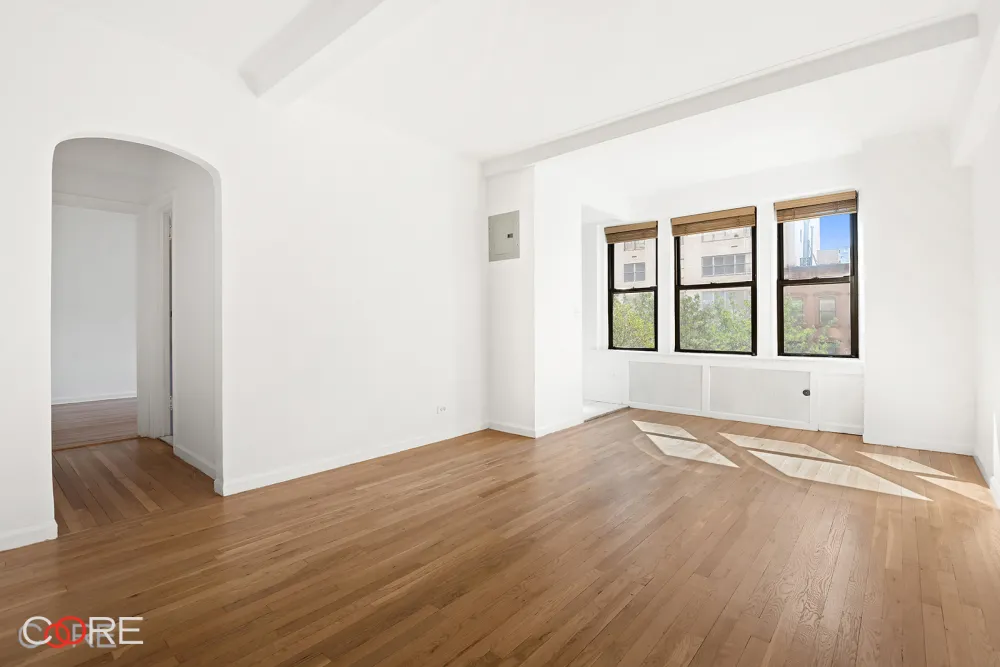 Sponsor sale, no board approval! Come see this sunny one-bedroom home with tree-top views, perfectly located in prime Upper East Side! In good condition, this charming home features classic prewar details such as high beamed ceilings, an arched doorway, and inlaid oak floors. A comfortable foyer with... See more