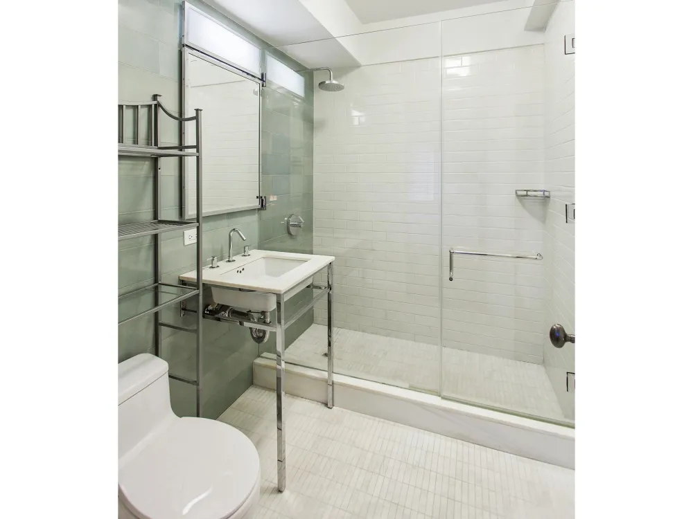 This home boasts great light and is thoughtfully constructed to optimize room area, comfort & high design. Designed by acclaimed interior architect Shamir Shah, the residence boasts a kitchen with Cyprus limestone tile floors, Calacatta gold marble slab countertops, light rift-cut white oak lower cabinetry, high-gloss lacquer upper cabinetry, Bosch oven and cook top, Bosch dishwasher and microwave, and a custom-made Northland refrigerator. Elegant glass pocket doors lead to bedroom with en-suite bath which includes sleek walls of luminescent blue-gray clay tile combined with hand-made marble floors, marble topped vanity, and Hansgrohe fixtures. Great Closet Space, 4 inch white oak flooring & luxury finishes throughout.
